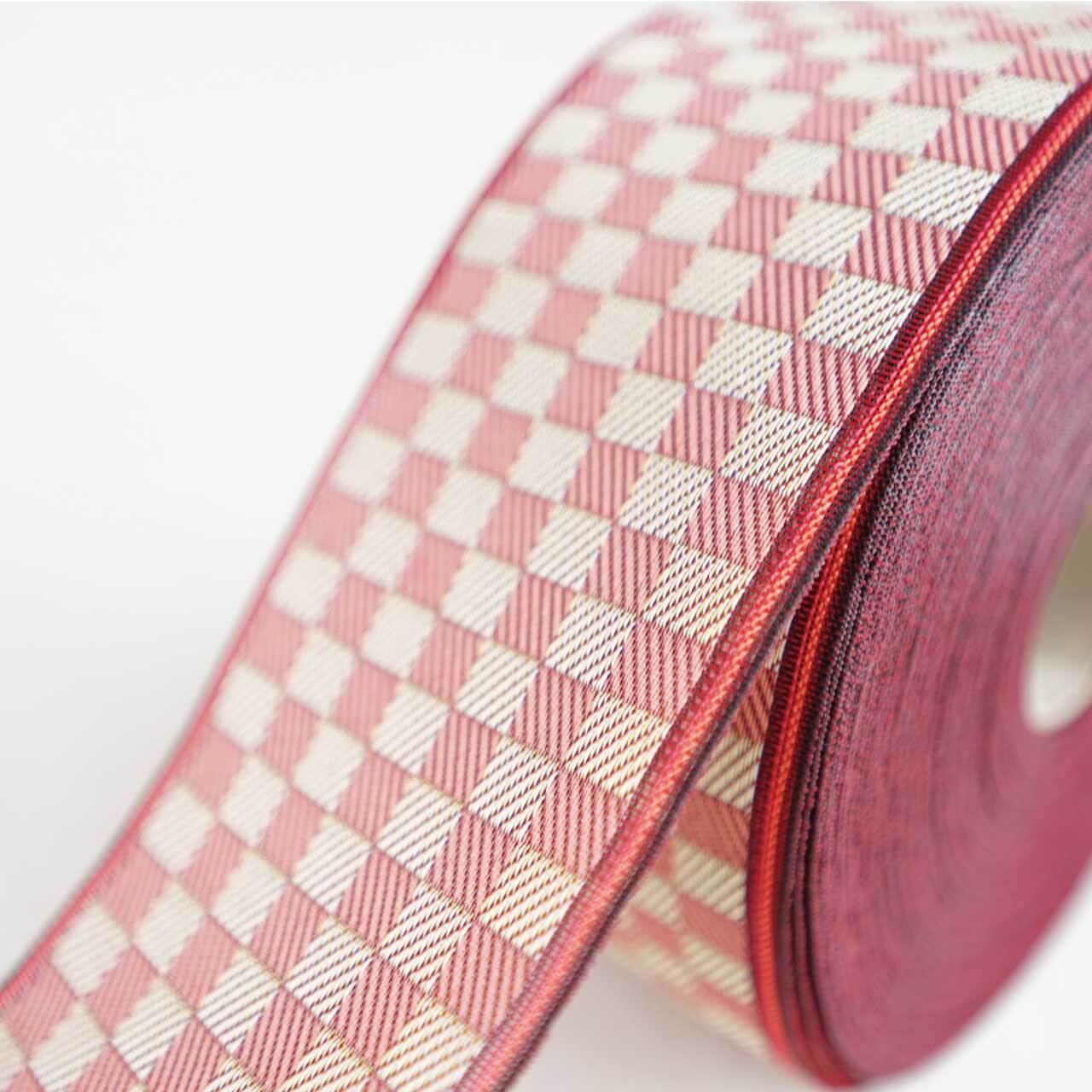 代表的な和柄の市松模様。赤×黄色の市松柄を畳の縁に使いました!